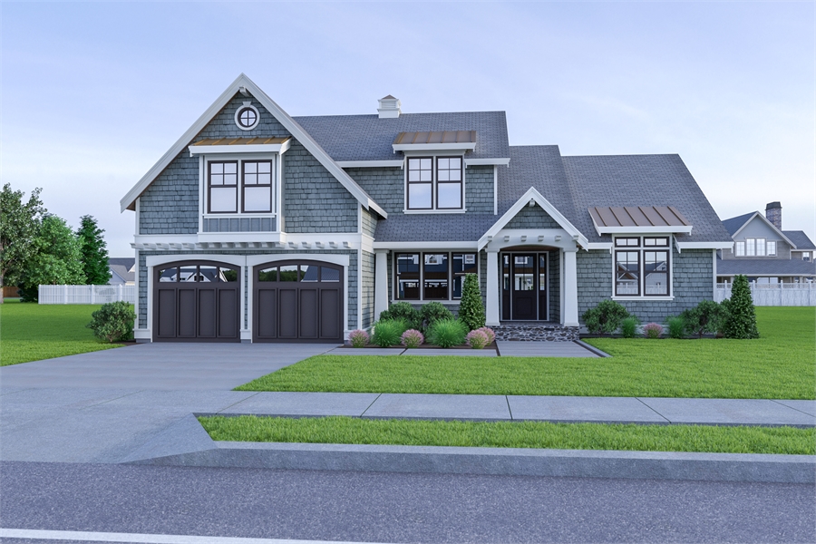Exterior Front View Of An Upper Class Cape Cod Style Rural Home